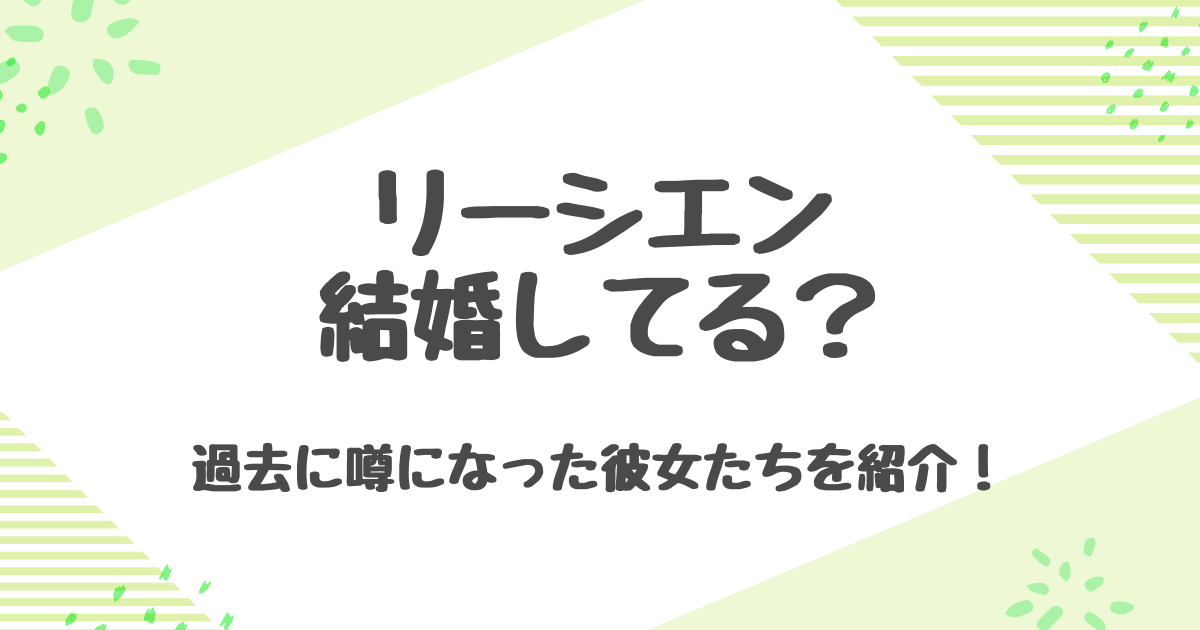 この記事では、リーシエンの現在の結婚状況や過去に噂になった彼女たち、さらに彼の好きな女性のタイプまでを徹底的に紹介します。