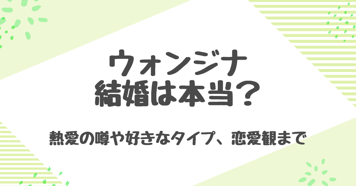 この記事では、ウォンジナの結婚や熱愛の噂、歴代彼氏、好きなタイプ、恋愛観まで詳しく紹介していきます。